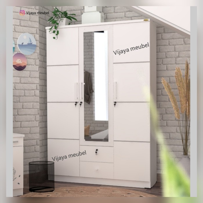 Jual Lemari Pakaian 3 pintu White glossy di lapak Agen Sumber : www.bukalapak.com